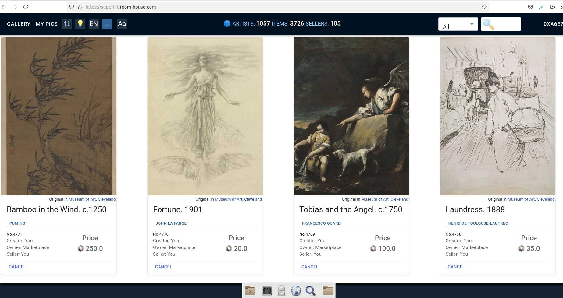 With direct import from CMA collection the 5k mark achieved today. NFTs are not meant to misrepresent museum collection, images scaled down to 1,280 and all info is minimal - but the permalink to the museum is here and the museum is a click away in whole **** er and 4k res. One thing: Museums are FRIEND for NFTs after they skip over prejudices. Because NFT is linked to the Museum. Unlike Wikipedia which is Museum's real foe - pulling the blanket, misrepresenting, giving false images, spit on copyright, so on, and Museums will fight against Wikipedia, Flickr etc. alongside NFTs.