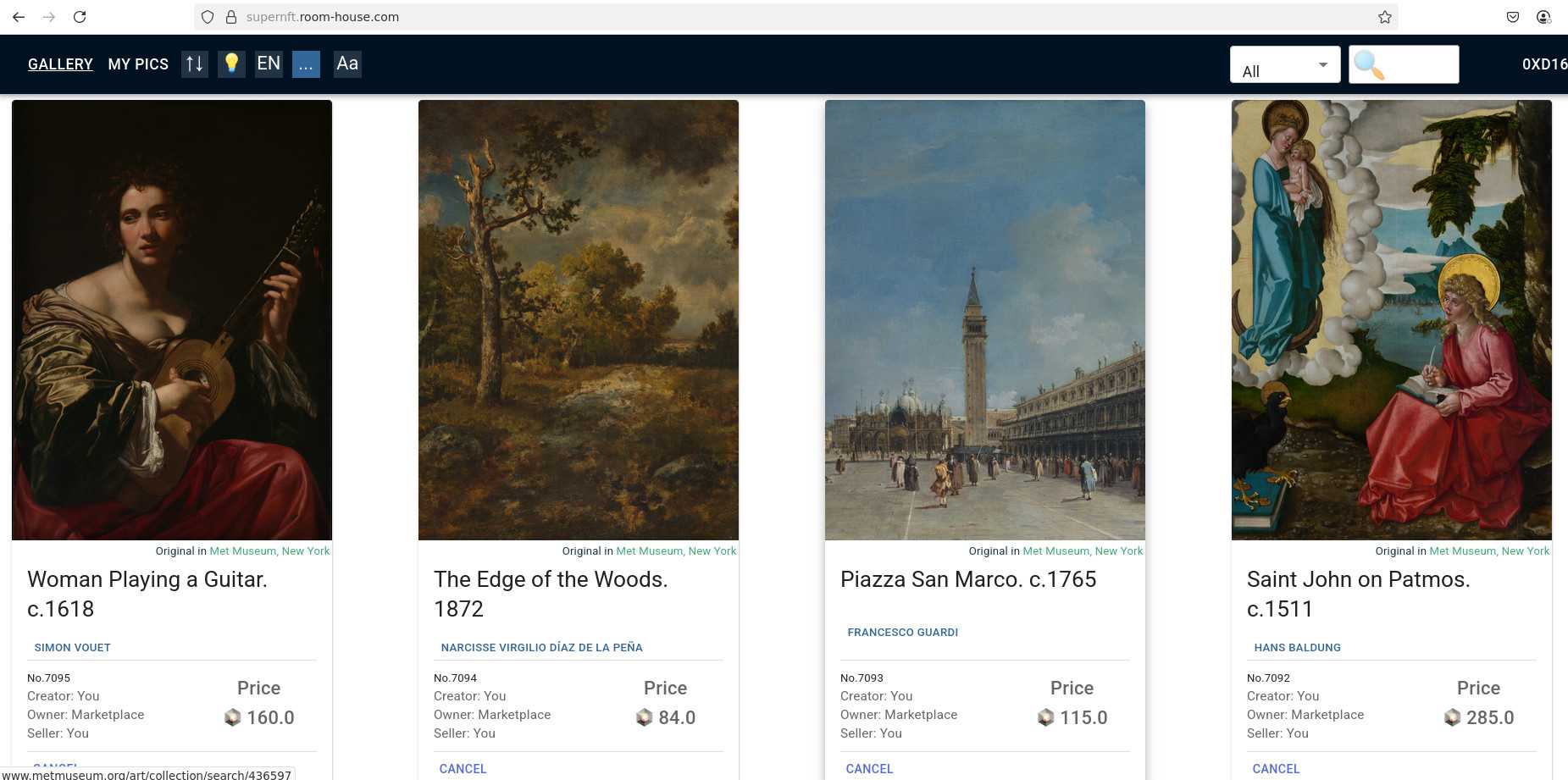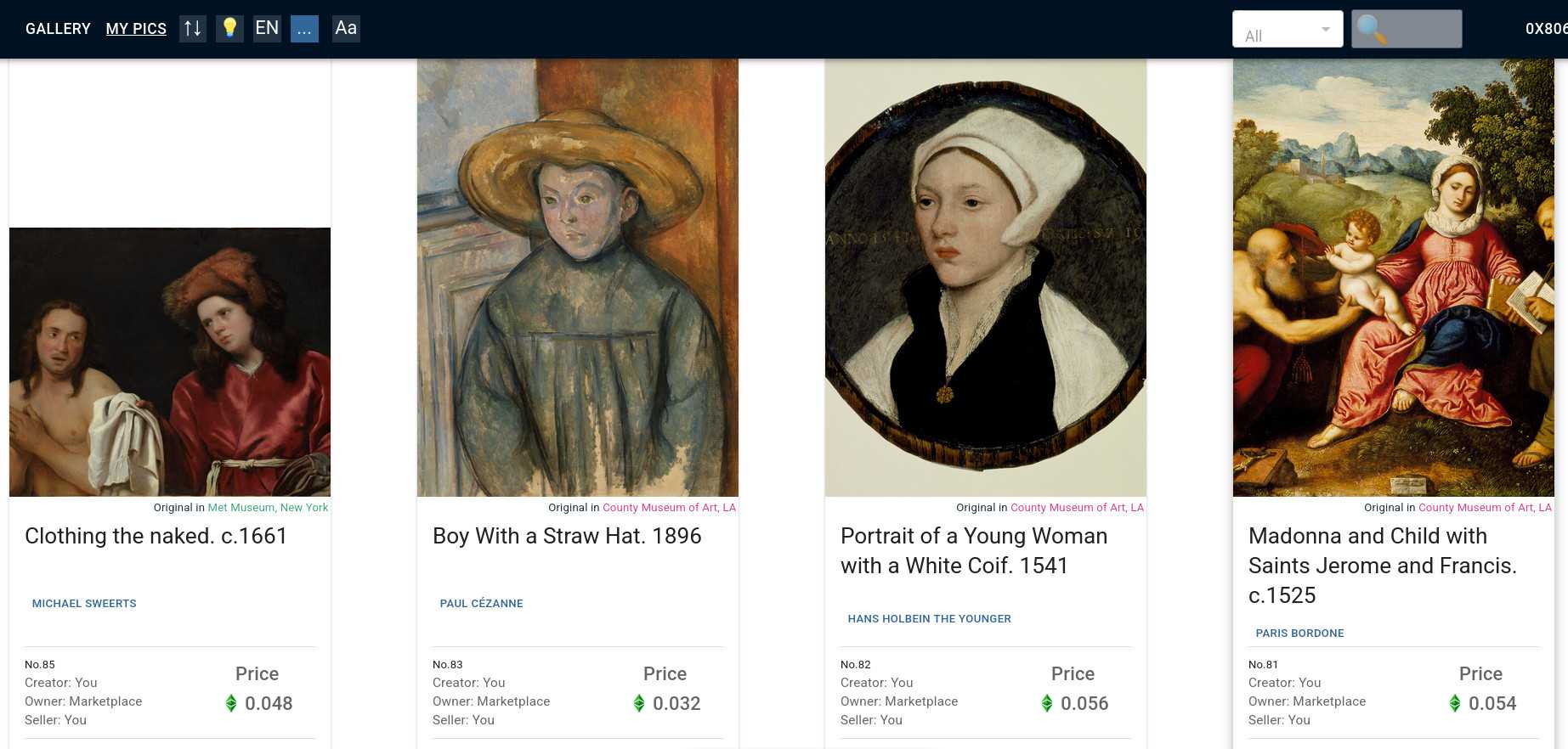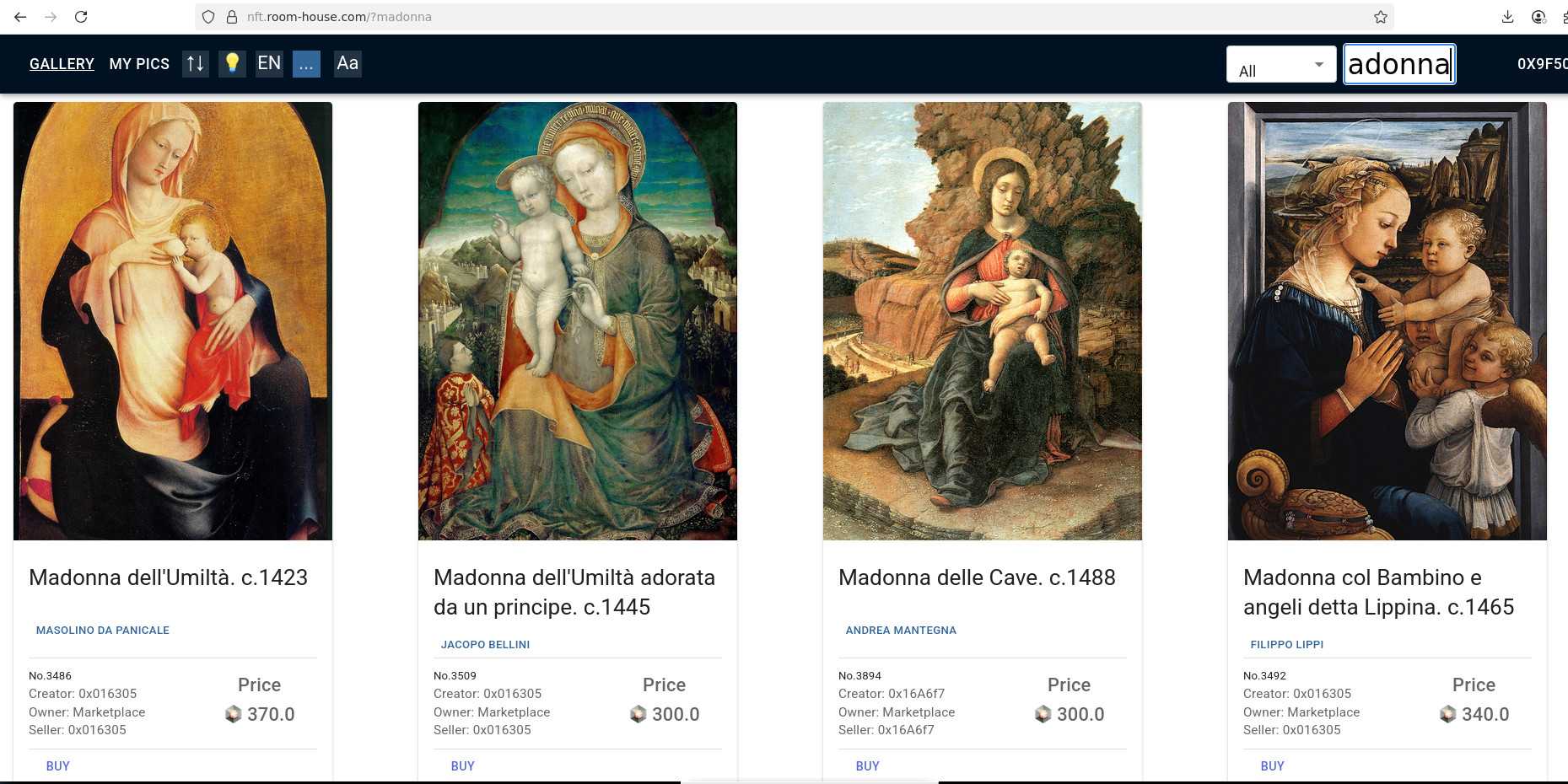 The recent rush to buy madonnas and saints has not affected our Expanse market https://nft.room-house.com... yet: beautiful - but alas unattributed to a museum - NFTs minted ages ago when ******* ody cared for an attribution to a particular Museo. This happens so that you can buy them for Expanse - because other madonnas with a Museum attr. have presently migrated to the ETC market, and there they cost 100x times more.